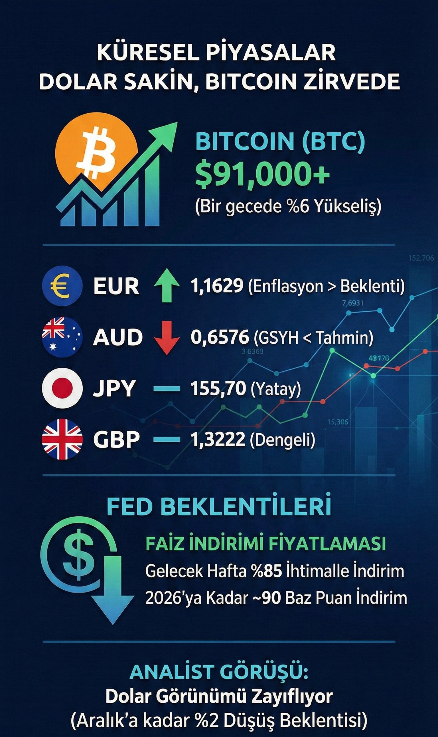 Bitcoin’in bir gecede yüzde 6 yükselerek 91.000 doların üzerine çıkması risk iştahını destekledi ve gelişmiş ülke para birimlerindeki hareketleri gölgede bıraktı.