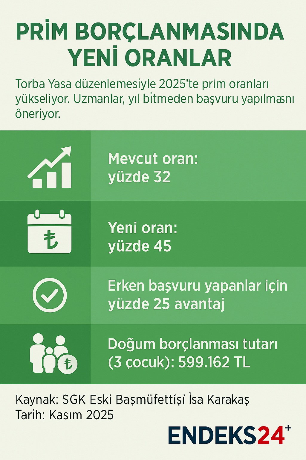 Emeklilik planı yapan vatandaşlara, prim borçlanması oranlarında yapılacak artış öncesi önemli bir uyarı geldi. SGK Eski Başmüfettişi İsa Karakaş, yeni yılda yürürlüğe girmesi beklenen Torba Yasa ile borçlanma prim oranlarının yüzde 32’den yüzde 45’e çıkarılacağını belirterek, vatandaşların başvurularını iki ay içinde tamamlamaları gerektiğini söyledi.