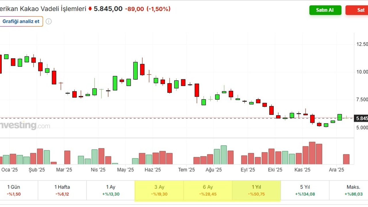 Dünyada kakao fiyatları son 3 ayda %19.50, 6 ayda %28.45 ve 1 yılda %50.75 değer kaybetti. Kakao fiyatları artarken çikolata fiyatları sürekli artıyordu. Eeee kakao fiyatları sürekli düşerken çikolata fiyatları neden düşmüyor??? Bahane her sektörde olduğu gibi hazır: "Çok yüksek fiyatlardan ham maddeyi maliyetlendik, stokların önce bitmesi gerekiyor." Bunların stoklarının bitmesi demek, fiyat normalleşmesinin en az 3-6 ay süreceği demektir. Ondan sonra haliyle kakao ve çikolata fiyatları nerede olur? Onu bilmemiz biraz zor!
