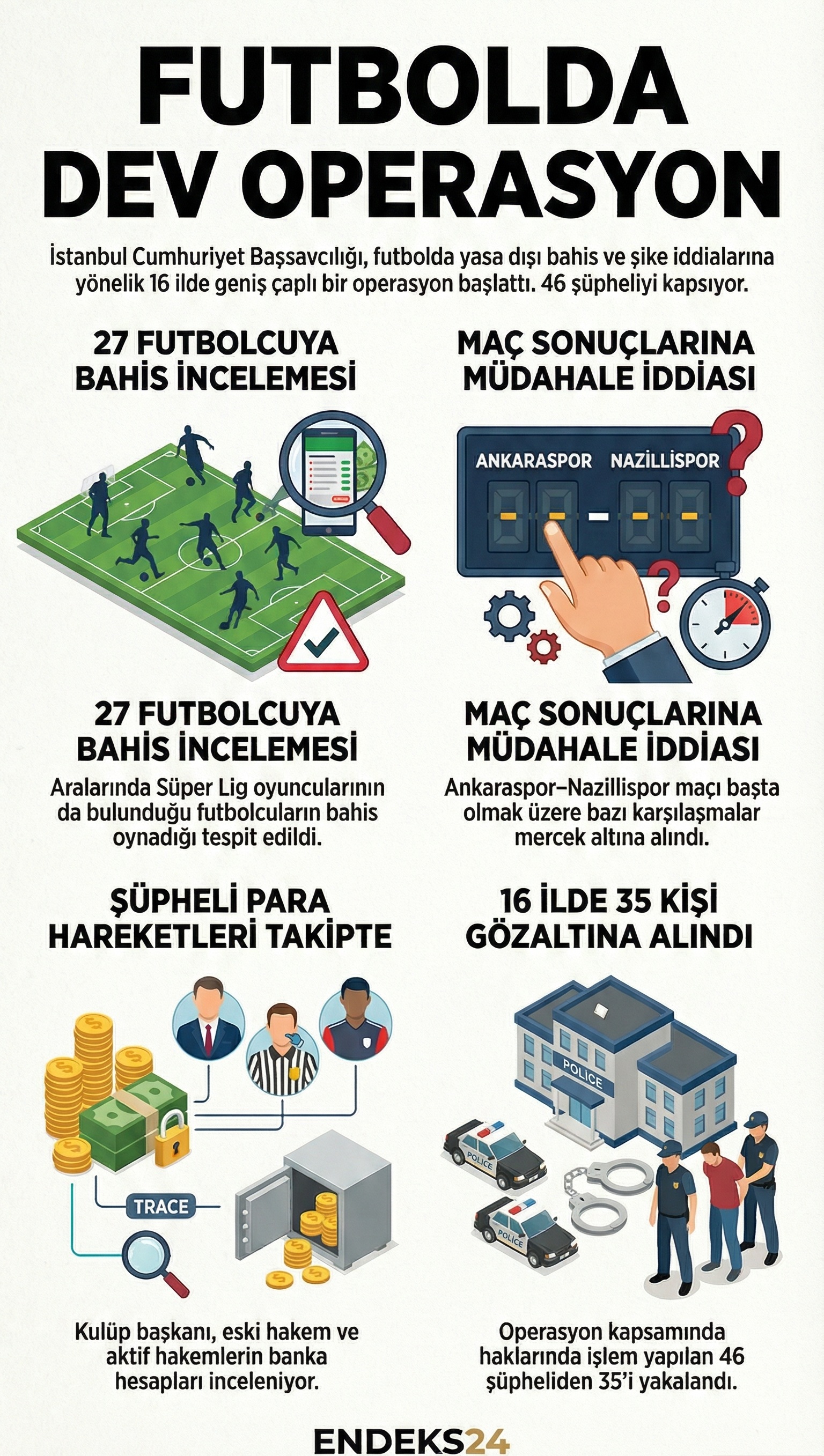 Bu bulgular, operasyonun sadece yasa dışı bahis oynayanları değil, aynı zamanda futbolun ruhuna aykırı olarak maç manipülasyonu yapan organize yapıları da hedef aldığını gösteriyor.