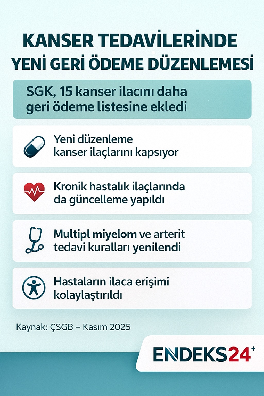Çalışma ve Sosyal Güvenlik Bakanı Vedat Işıkhan, kanser hastalarını yakından ilgilendiren yeni geri ödeme düzenlemesini duyurdu. Bakan Işıkhan, Sosyal Güvenlik Kurumu tarafından yapılan güncelleme ile kanser tedavisinde kullanılan 15 ilacın daha geri ödeme listesine eklendiğini açıkladı.