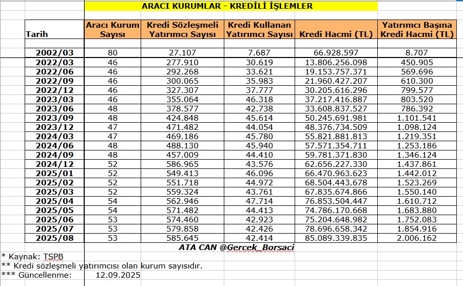 Aracı kurumlarımızın kredili işlemler tablosunu incelediğimizde, aylık kredi hacmi ve yatırımcı başına kredi hacminde zirvelerde olduğumuzu görmekteyiz.