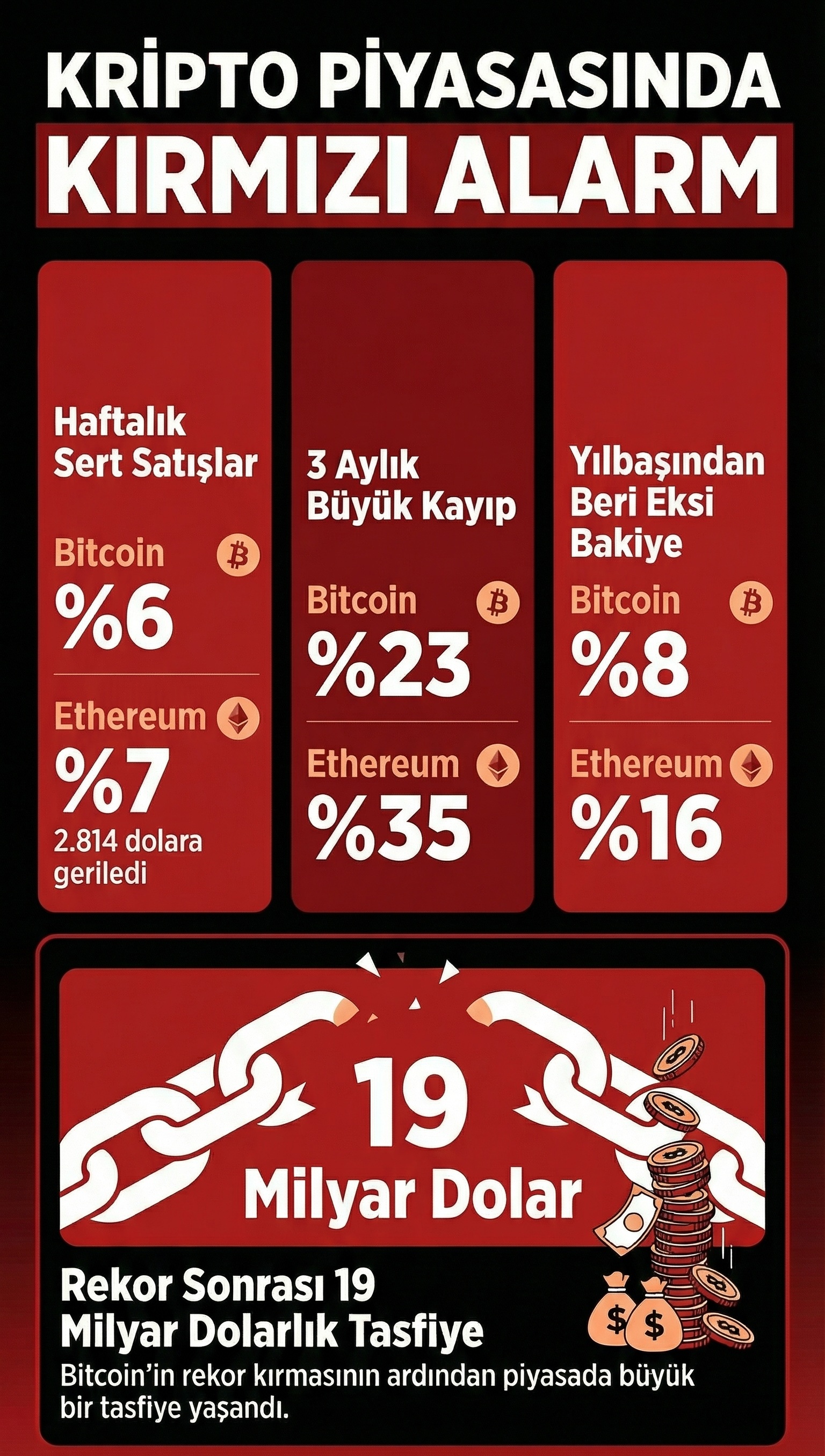 Son üç ayda Bitcoin’de değer kaybı yüzde 23,02’ye, Ethereum’da ise yüzde 34,78’e çıktı. Yılbaşından bu yana kayıp Bitcoin’de yüzde 8,46’ya, Ethereum’da ise yüzde 15,9’a ulaştı.