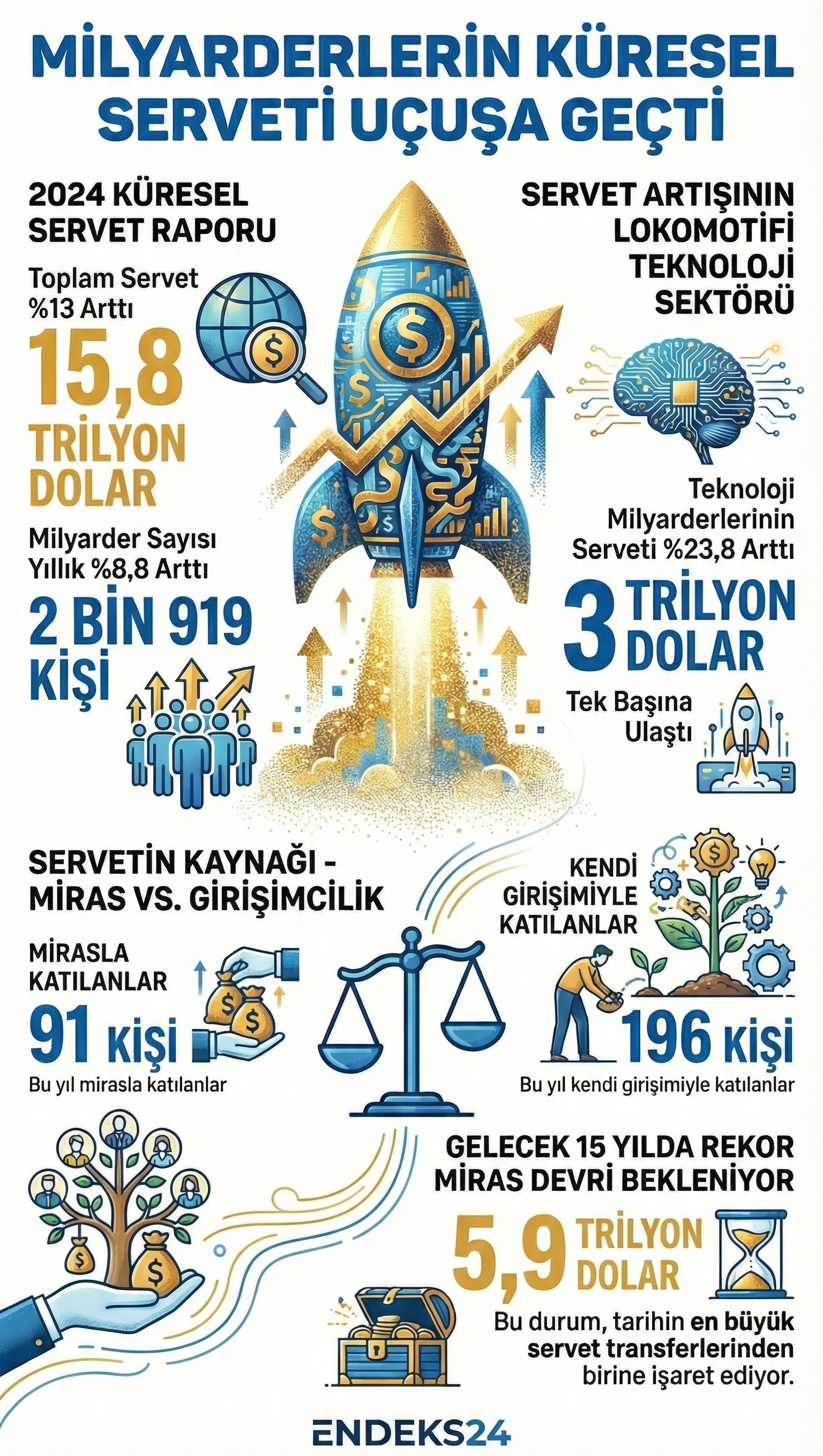 Milyarder sayısı yıllık bazda yüzde 8,8 artarak 2 bin 919’a ulaştı. Toplam servet ise yüzde 13’lük yükselişle 15,8 trilyon dolar seviyesine çıktı. Bu artış, 2021’den sonraki en yüksek ikinci yıllık yükseliş olarak kaydedildi.