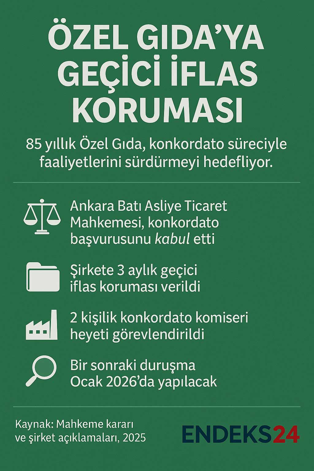 Özel Gıda hakkında açılan konkordato davasının bir sonraki duruşması 2026 yılının ocak ayında gerçekleştirilecek. Mahkeme, bu süreçte şirketin mali disiplinini koruyup koruyamadığına ilişkin komiser raporlarını dikkate alacak.
