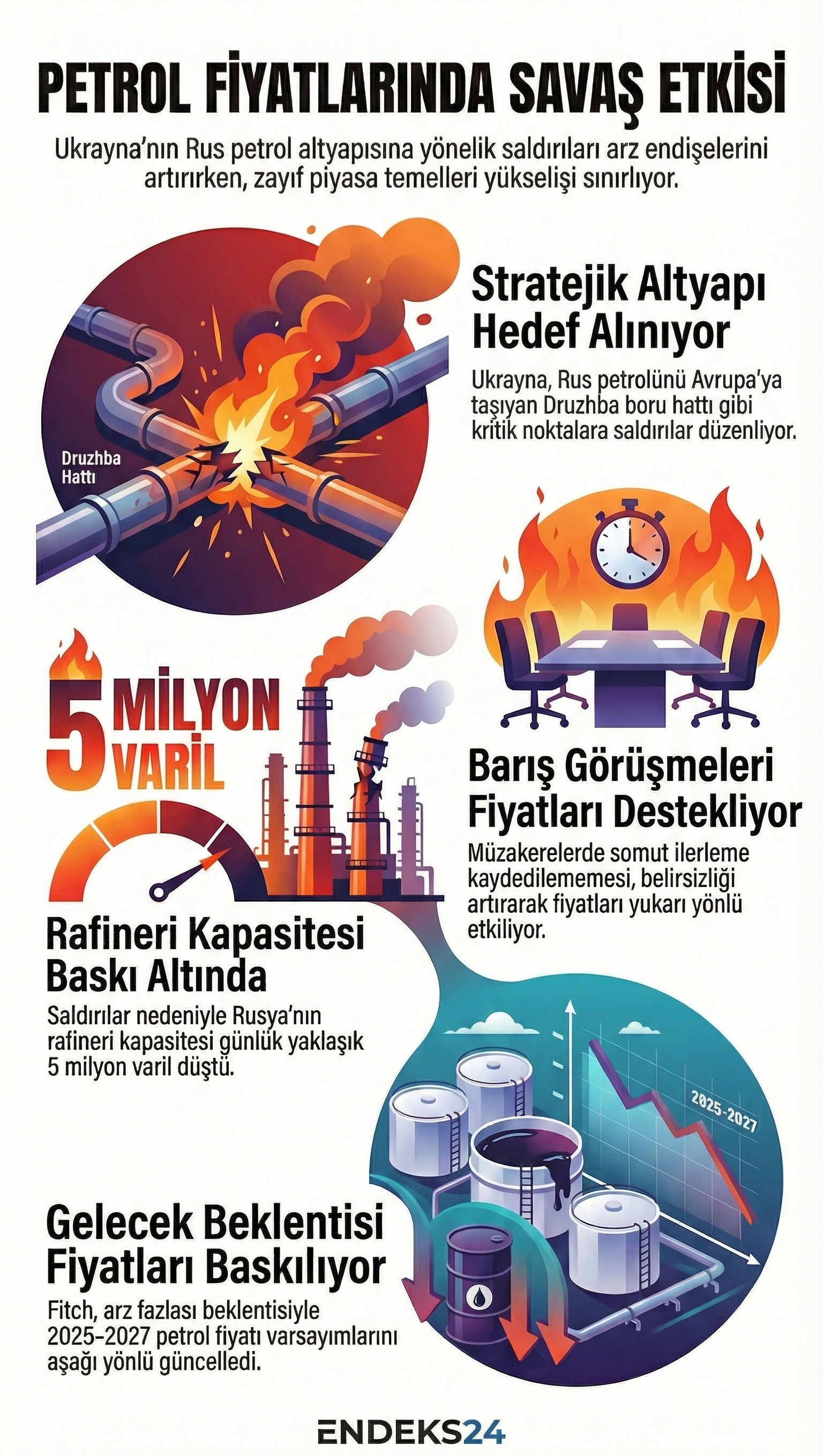 Brent ham petrolü 24 sent artışla 62,91 dolar olurken, ABD WTI kontratı 29 sent yükselişle 59,24 dolardan işlem gördü. Ukraynalı bir askeri istihbarat kaynağı, Tambov bölgesindeki DRUZHBA boru hattının vurulduğunu açıkladı. Bu hat, Rus petrolünü Macaristan ve Slovakya’ya taşıyan güzergâh üzerinde beşinci saldırı olarak kaydedildi. Boru hattı operatörü ve Macaristan’ın enerji şirketi, akışın normal şekilde sürdüğünü belirtti.