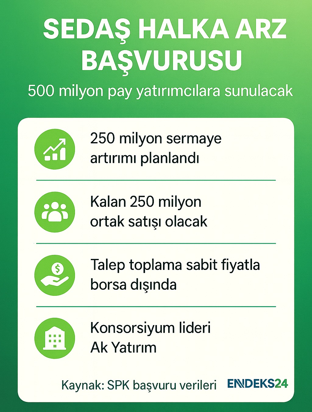 SEDAŞ – SAKARYA ELEKTRİK DAĞITIM A.Ş., halka arz süreci kapsamında SPK’ya resmi başvuruda bulundu. İzahname sürecinin ardından toplam 500.000.000 adet payın yatırımcılara sunulması hedefleniyor. Bunun 250 milyon adedi sermaye artırımı, kalan kısmı ise ortak satışı olarak planlandı.