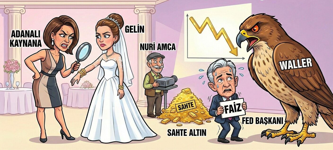 Düşünsenize, düğün salonunda orkestra "Deliloy" çalarken, kenarda bekleyen dedektif teyzeler ve kaynanalar... Ellerinde birer büyüteç, geline takılan her çeyreğin kenarındaki tırtığı sayıyorlar. Hele o kaynana bir de Adanalıysa yandınız; elindeki yelpazeyi silah gibi kullanıp "Bu Adana burması niye ince? Waller’ın faizi benim kızımın rızkından mı kesiliyor?" diye düğün salonunda FOMC (Federal Açık Piyasa Komitesi) toplantısı başlatır!