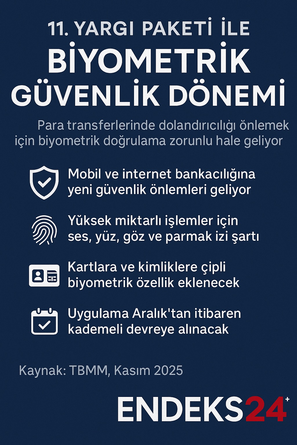 Meclis’e sunulan ve aralık ayında yasalaşması beklenen 11. Yargı Paketi, özellikle para transferi işlemlerinde yeni güvenlik önlemlerini içeriyor. Düzenlemeyle mobil ve internet bankacılığında artan dolandırıcılık vakalarının önüne geçilmesi hedefleniyor.